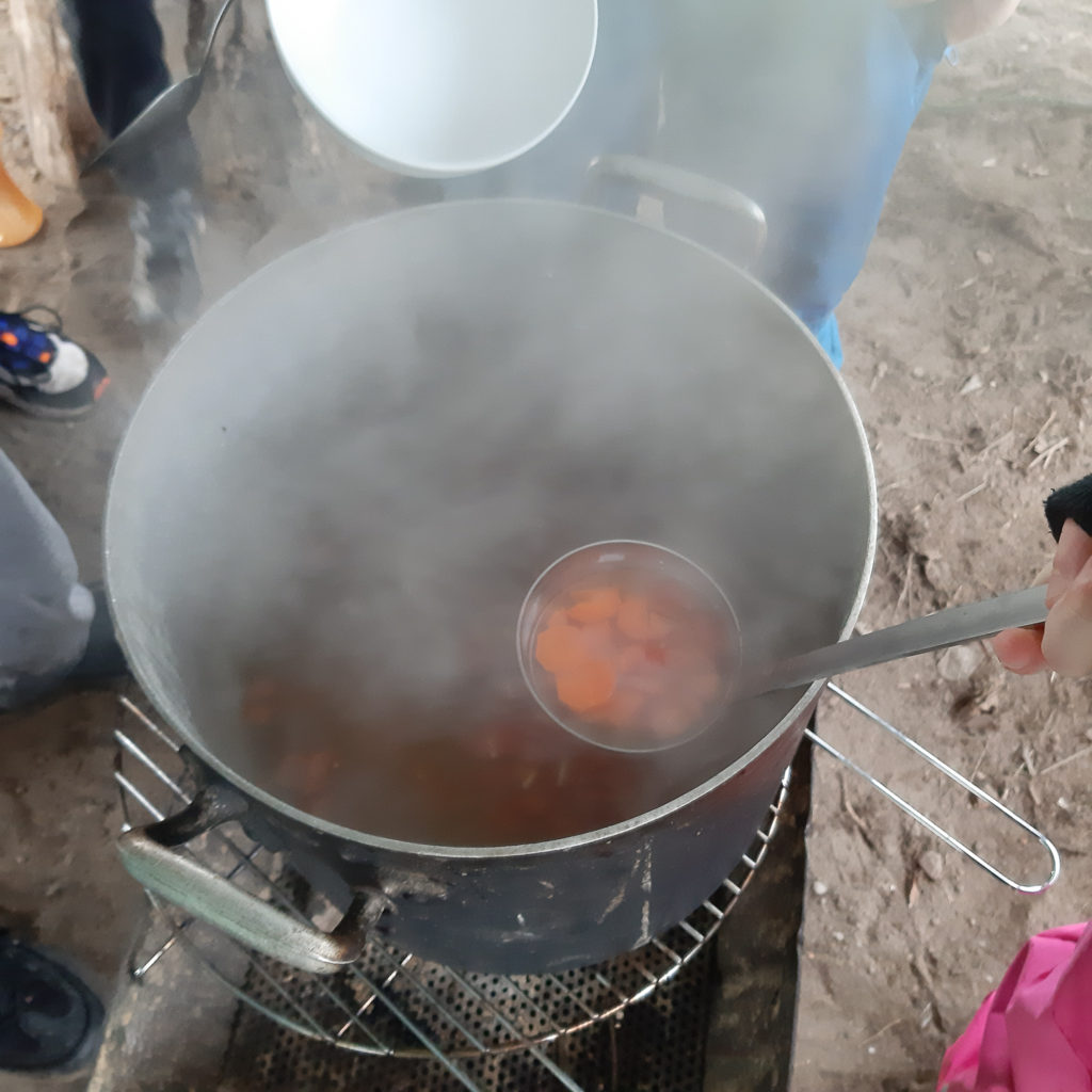 Gemüsesuppe über dem Feuer